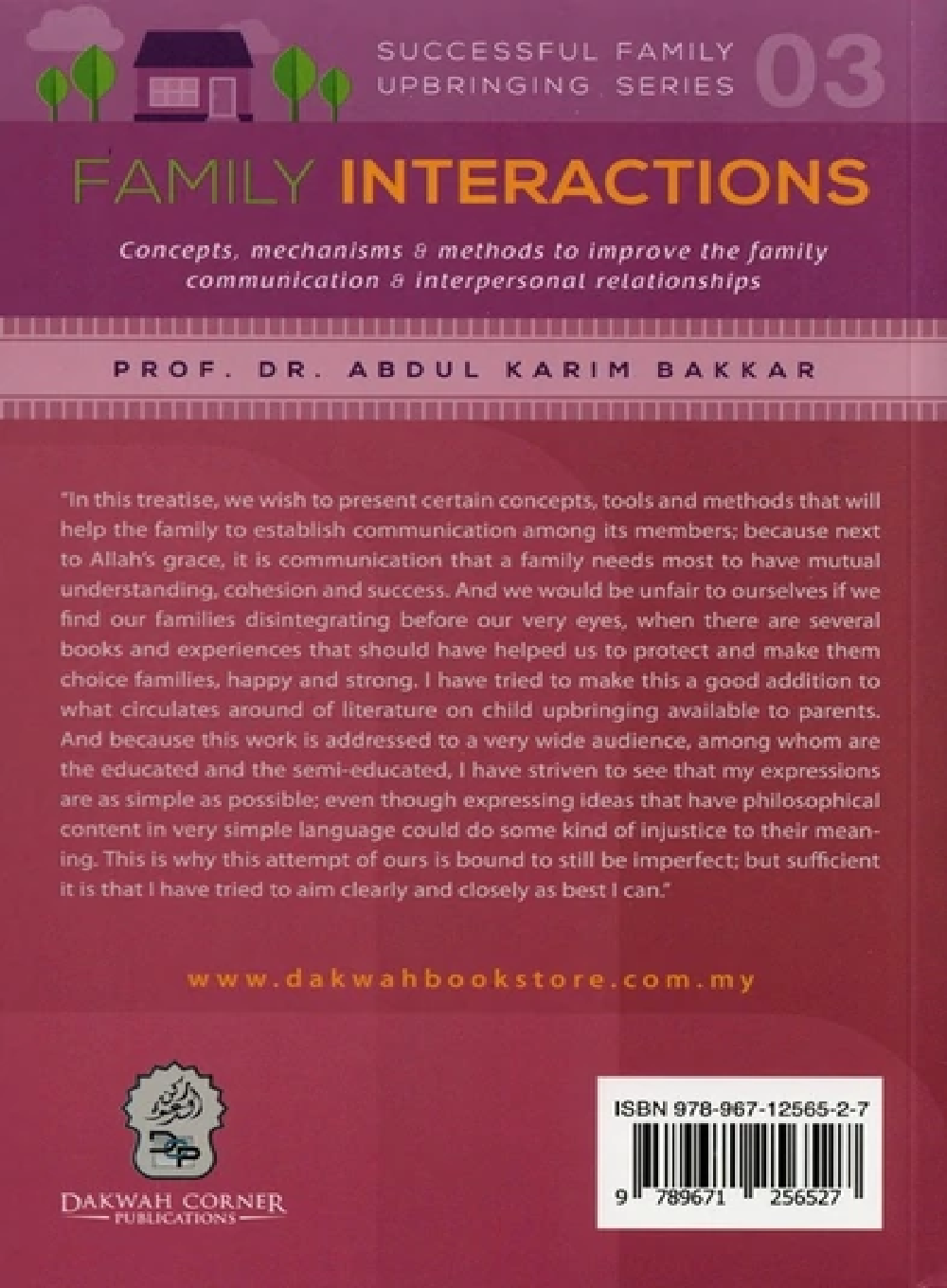 In "Family Interactions," the third installment of the Successful Family Upbringing Series, Prof. Dr. Abdul Karim Bakkar offers valuable insights into the dynamics of family life. This book delves into the concepts, mechanisms, and methods essential for fostering effective communication and robust interpersonal relationships among family members. Drawing on Islamic principles and psychological insights, Dr. Bakkar provides practical advice and strategies to navigate the complexities of family interactions, aiming to create a harmonious and supportive home environment. Whether addressing conflicts, enhancing bonds, or developing mutual respect and understanding, "Family Interactions" serves as a comprehensive guide for parents and children alike to achieve a successful family upbringing.