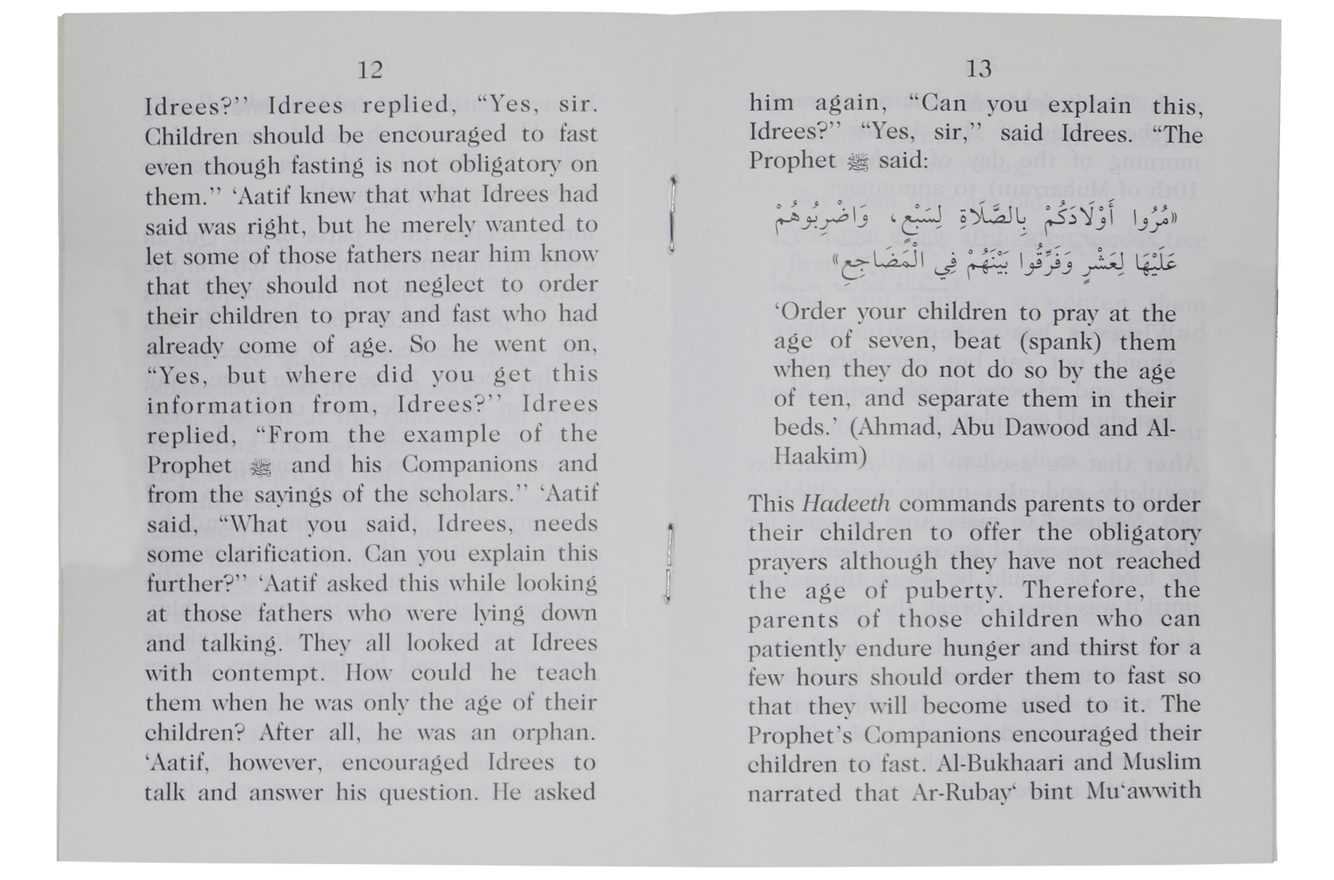 "Idrees in Ramadan" is the book teaching kids how to spend Ramadan. The manner of spending the month of Ramadhaan in a right way, that is the essence of Ramadan. It is shown to spend this month in an interesting manner. We should teach our children the merits of this month of piety and show them how to spend the fasting time in obedience to Allah in word and deed.